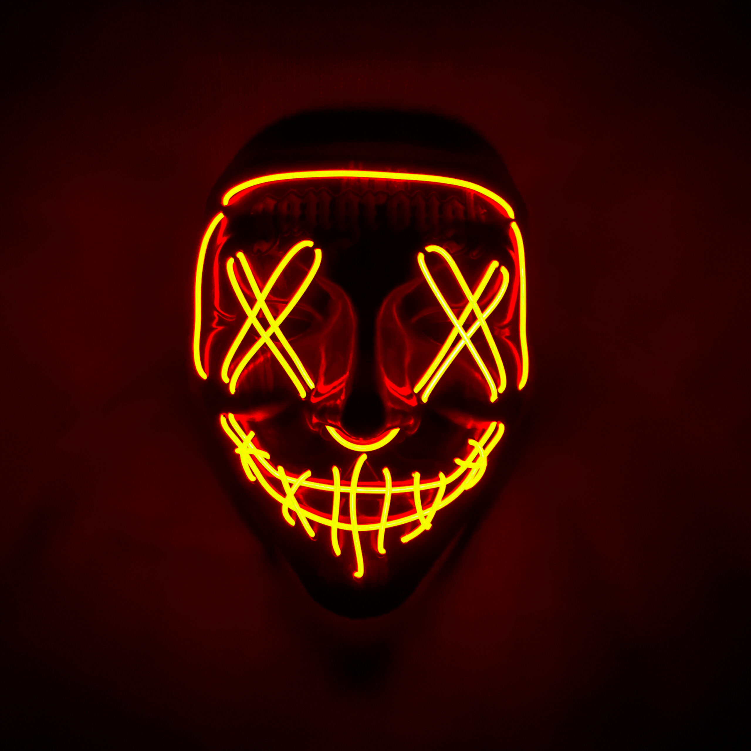 LED маска със светлоотразителен лого стикер – за нощни партита и фестивали.